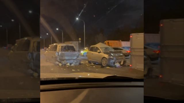 На внешней стороне 36-го км МКАД перед съездом №35А столкнулись несколько автомобилей.