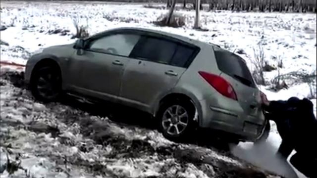 Мужики помогают женщине выбраться на трассе в Омске 2 камера