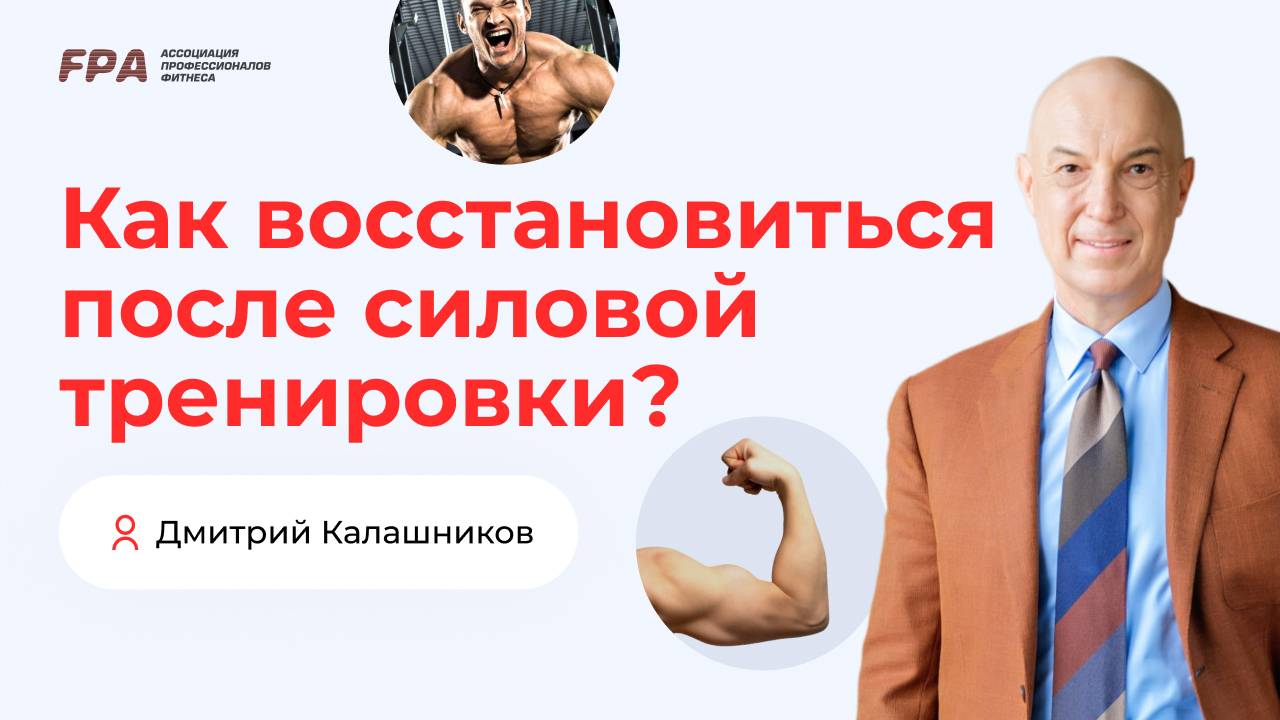 Как восстановиться после силовой тренировки? На ваши вопросы отвечает Президент FPA Дмитрий Калашников. Смотрите вебинар «Разбор мифов из качалки» (30 июля 2024) полностью по ссылке: https://youtube.com/live/LxYCWybvYR4 Президент Ассоциации Профессионалов Фитнеса Дмитрий Калашников:👇 ✔️Telegram — https://t.me/DGKalashnikov ✔️ВКонтакте — https://vk.com/id182391555 ✔️Insta — https://www.instagram.com/kalashnikovdm/ ✔️Яндекс.Дзен — https://zen.yandex.ru/id/6095316338d32b7bd7ba35c1 __________ Ассоциация Профессионалов Фитнеса (FPA) - лидер на российском рынке фитнес-образования. С 2000 года в FPA сертифицировано более 25 000 специалистов. Наши выпускники работают более чем в 1000 клубах Москвы, России и стран зарубежья 👉 http://fitness-pro.ru/ __________ Дистанционные программы обучения: – Персональный фитнес-тренер: https://bit.ly/39A06Xr – Фитнес-нутрициолог: https://bit.ly/37oC14n — Инструктор групповых программ: https://bit.ly/3AUq3ip – Детский фитнес: https://bit.ly/34OjT4B __________ Очные программы обучения: – Персональный фитнес-тренер: https://bit.ly/2ONTH2K – Инструктор групповых программ: https://bit.ly/2uFh3Re __________ Мы в соцсетях: ВКонтакте: https://vk.com/fpafpa Telegram-канал: https://t.me/trenerskayaFPA Telegram-чат для тренеров: https://t.me/trenerskayaFPAchat Яндекс.Дзен: https://zen.yandex.ru/fitness_pro_ru