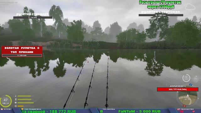 Поддержка донатом https://new.donatepay.ru/@1032463 Альтернативный донат https://www.donationalerts.com/r/kalyamba11 5536913964533059 карта Тинькоф Если стрим лагает,смотри стрим на трово https://trovo.live/s/Kalyamba_na_Ribalke Мой ВК - https://vk.com/kalyantv НИК в игре kalyan11 НАШ ДИСКОРД СЕРВЕР https://discord.gg/QhtSPKp3 Заказ водоема на 1 час - 500р ( весь стрим 2500р ) Модерка на канале 1200р ( каждая следующая на 100р больше) Озвучка доната на 40р,50р,100р,200р,300р,500р,1000р ✅Призы в рулетке "ЗОЛОТАЯ" ✔ ЗОЛОТО ✔ ПРЕМ ✔ КАТУШКИ ЮБИЛЕЙНАЯ БОРЕЛИКА, ВЕНГИ, ТАЙГА, СИЛЬВЕР 80, И другие ✔ ПАЛКИ ПИЛКЕРНАЯ, ДОНКА МОРСКИЕ, ✔ РОД ПОД, СТУЛЬЯ ✅Призы в рулетке СТАНДАРТ : ✔ катушкИ ЮБИЛЕЙНАЯ БОРЕЛИКА, ВЕНГИ, ТАЙГА, СИЛЬВЕР 80, И другие ✔ катушки 60 для медного ( ЭВИИ, НАТОРЫ, ГОЛДА, и тд) ✔ ПИЛКЕРНОЕ УДИЛИЩЕ КОРОЛЕВА ОКЕАНА ✔ Морское Донное удилище ✔ прем ( 3, 7, 30 дней) ✔ золото ( 1, 3, 5, 10, 20 ,50) ✔ билет на море ( 1, 3, 5 дней) ✔ голд наживка и др. ✅Призы в рулетке "СТАРТОВАЯ" ✔ катушка "silver80" ✔ катушка "БЕЛЫЙ КАЛИБР" ✔ катушка "Черный калибр" ✔ катушка "Протон" ✔ катушка "Нарга 6000" ✔ Набор Фидерист и спинингист ✔ Карповик Фортуна ✔ фидерные удилища ✔ прем, золото, алкашка, наживки и тд P.s Рулетка это не казино, а награда за поддержку стримера. Вечный ТОП ПОДДЕРЖКИ (11.05.2024) 1. Dimon_pokemonchik 119 784 2. Interceptor 75 508 3. Skreb79 71 261 4. une personne 68 619 5. Нарвал77 31 550