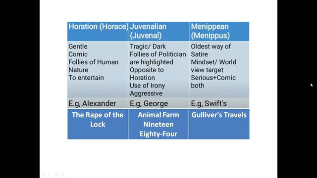 In this lecture you will learn three main types of satire use in literature. Horatian. Horatian satire is comic and offers light social commentary. ... Juvenalian. Juvenalian satire is dark, rather than comedic. ... Menippean. Menippean satire casts moral judgment on a particular belief, such as homophobia or racism. #SatireinLiterature #EnglishWithSirTahir