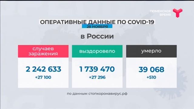 За сутки в Тюменской области - 165 новых случаев, а вот выздоровевших - более чем вдвое больше - 391 человек. В России - 27 100 заболевших, из больниц выписали 27 296 пациентов. Такие данные передаёт сайт стопкоронавирус.рф. На Ямале за сутки 195 положительных тестов и 4 летальных исхода, столько же человек умерло и в Югре. В ХМАО 215 новых случаев коронавируса.