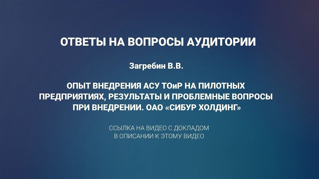 Ответы на вопросы. Доклад. Опыт внедрения АСУ ТОиР на пилотных предприятиях ОАО «Сибур Холдинг»