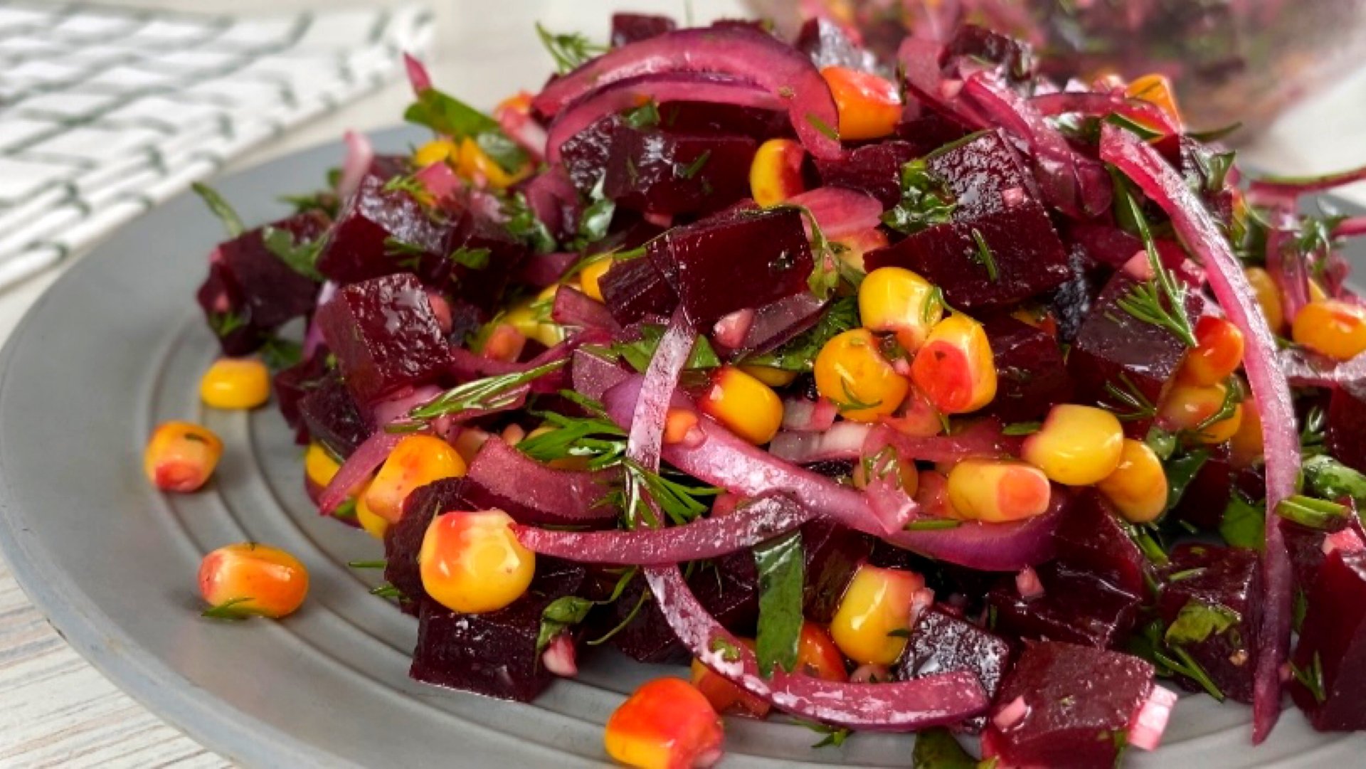 САЛАТ за 5 минут из Банальной СВЕКЛЫ! Это просто БОМБА! Очень вкусно! Просто загляните в свой холодильник,все продукты для этого салата там наверняка уже есть! ********************************** ПРОДУКТЫ: -свекла-1 крупная -кукуруза консервированная-1 банка (200гр) -красный лук-1/2шт -чеснок-2зубчика -соль,перец,специи-по вкусу -растительное масло-2ст.л. -зелень (укроп,петрушка)-пучок ********************************** "Весь музыкальный контент, использующийся в видео на данном канале размещён на основании лицензии Creative Commons 4.0 (https://creativecommons.org/licenses/by/4.0/) В видео играет музыка: Noir Et Blanc Vie - FynestLyk #салат #салатизсвеклы #салатнакаждыйдень #рецептысалатов #закуска #салатыизакуски #цветкованаталья #простыерецепты #рецептынакаждыйдень #вкусно #просто #быстро #видеорецепты #салатза5минут #быстрыйсалат