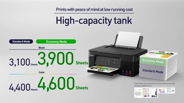 Wireless multifunction refillable ink tank printer with low-cost ink bottles for greater cost efficiency.