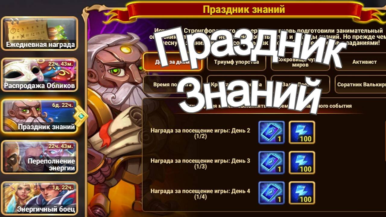 Ответы на вопросы викторины http://morevokne.ru/?p=586 Игра Хроники Хаоса Эра Доминиона праздничный ивент Праздник Знаний специальное событие в честь праздника 1 сентября День Знаний. А так же Ивент Переполнение энергии 1 дневной. Показываю вкладки спец события Праздник Знаний и начинаю выполнять задания ивента. Выполняю вкладки ивента, поступают полезные игровые ресурсы и билеты Стронгфордской викторины. Из ивента Переполнение энергии поступают Заряженные матрешки за трату энергии. Открываю Заряженные матрешки. Новый флаг для героев с ролью Боец. Другие игровые моменты. Отвечать на вопросы Стронгфордской викторины в игре Хроники Хаоса планирую в следующем видео. А так же открывать полученные за викторину Сумки Искателя Знаний. http://morevokne.ru/?p=586 Ответы на вопросы викторины, в начале новые добавленные в эту викторину. Удачи в делах, отличного настроения и приятного просмотра. Можете оценить видео лайком (дизлайком) и высказывать ваше мнение в комментариях. Много интересной и полезной информации на канале Хроники Хаоса Александр Ларин