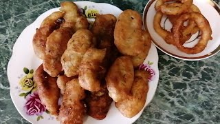 Рыбные палочки в квасном кляре. Луковые колечки фри