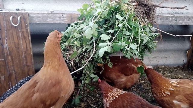Оригинальный способ подвешивания травы для питания курам несушкам