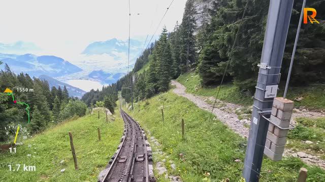 !!! Уклон 39%, вид машиниста поезда, со знаменитой зубчатой железной дороги Пилатус, 4К_60fps.