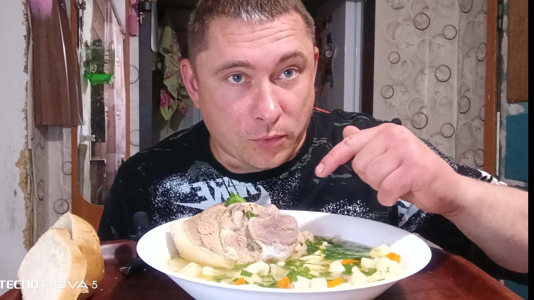 мукбанг/обжор/летний суп со свининой рулькой/