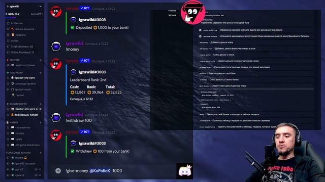 Настраиваем экономику робота UnbelievaBoat Дискорд. ► Discord igrawiki - https://discord.gg/Zx7QwazVZK Задать вопрос по настройке можно на сервере igrawiki Discord. =============================== Найти игравикинга можно тут: ► YouTube - https://www.youtube.com/c/igrawiking ► Discord - https://discord.gg/WuAaxv2mc9 ► VK - https://vk.com/igrawiking ► WASD - https://wasd.tv/igrawiking ► RuTube - https://rutube.ru/channel/23551995/ ► Trovo - https://trovo.live/s/igrawiking ► Telegram - https://t.me/igrawiking ► Steam - https://steamcommunity.com/id/igrawiking/ ► Dzen - https://dzen.ru/igrawiking =============================== Полезные ссылки по боту: ► Команды бота UnbelievaBoat - https://unbelievaboat.com/commands ► Весь плейлист про Discord - https://youtube.com/playlist?list=PL8EfvEN0y_ZsgkGmuoW0n0Btd4XgjF8MX =============================== Unbelievaboat в Дискорд — это один из самых популярных ботов. С его помощью можно создать на сервере отдельную экономику: продавать предметы за внутреннюю валюту, зарабатывать ее совершая типовые действия, устраивать розыгрыши. =============================== #UnbelievaBoat #Discord #igrawiki #игравики #botdiscord #discordbot