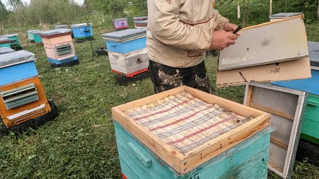Смотрим как отстроили вощину за время похолодания.