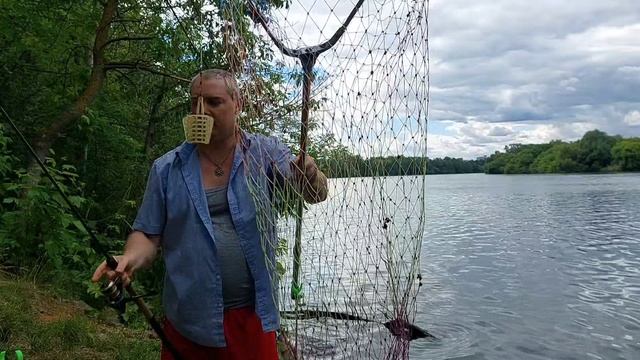 Ловлю леща на фидер на реке.