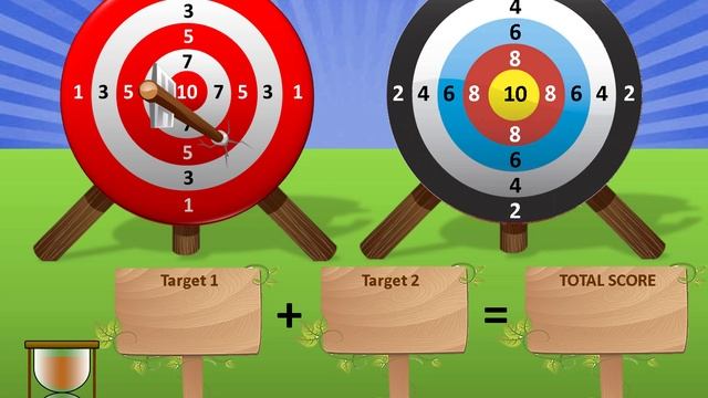 Numbers. Video-game for kids. The archer. Игра Лучник. Увлекательная и азартная игра на изучение цифр на английском языке. Условия игры - нужно быстро посчитать цифры, в которые попала стрела, и нужно успеть до сигнала. 1й уровень - полегче, для 1-2 классов изучения, а 2й уровень уже складываем 2 мишени, это задание для детей начиная с 3го класса изучения.
