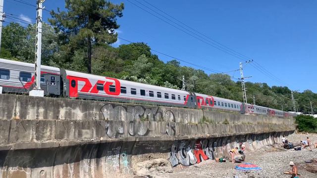 2ЭС4К-133 с поездом №84 Адлер-Москва,перегон Хоста-Мацеста,г.Сочи,Краснодарский край,Северо-Кавказская Железная дорога,15:07,17.06.2023г.