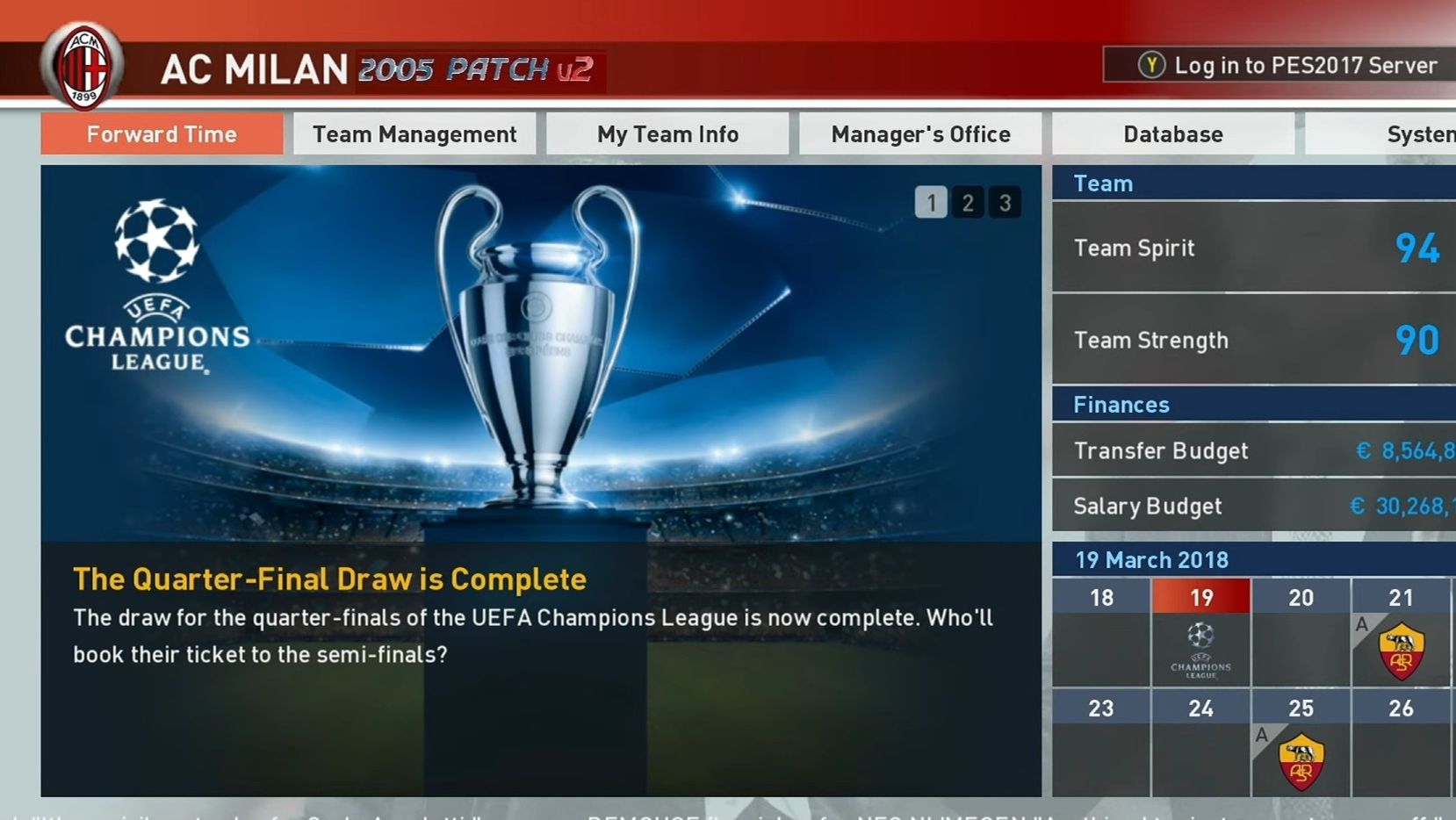Milan 2005 [PES 2017 - PC] 2005 Patch v2 - 2ой Сезон #12 (Барса в 1/4 лч)