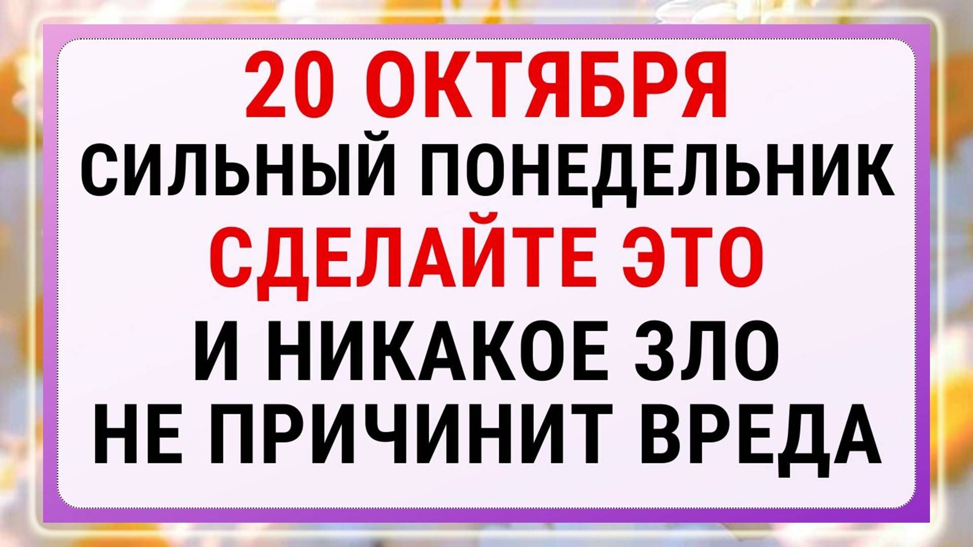 📅 20 октября — Сергиев день, посвящен памяти святых Сергия и Вакха. 🧐 Запрет на работу с тестом, чтобы избежать убытков и несчастий. 👖 Запрет на ношение старой одежды, дабы не привлечь бедность. 🌬️ Запрет на шум и грубость, так как негатив может повредить здоровью. 🎯 Запрет на приём подарков от незнакомых, чтобы не привлечь болезни. 🌥️ Снег на Сергия — к ранней и суровой зиме. 🌌 Звёздное небо — к тёплой зиме. 💦 Умывание молоком — для сохранения молодости и красоты. 🧹 Новый платок — защита от головной боли и простуды. 🙏 Подпишитесь на канал и сделайте донат, чтобы получать больше интересных статей!