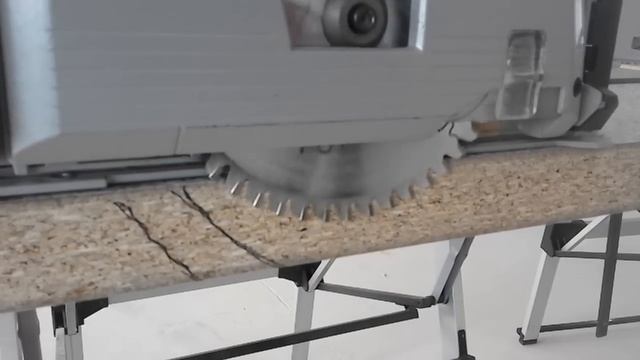 Jeżeli docinamy blat zależy nam na precyzji. Przy docinaniu blatu chcemy, aby laminat był docięty jak najlepiej. Żeby nie było pęknięć, odprysków, ponieważ jest to miejsce widoczne. W tym przypadku optymalnym do cięcie blatu będzie użycie zagłębiarki ze specjalną tarczą do laminatu. Zagłębiarka Bosch GKT 55GCE to specjalny rodzaj pilarki przystosowanej do pracy z szyną prowadzącą. Szyny te są dostępne w różnych wymiarach (od 80cm do 310cm). Szyny można tez łączyć. Trzeba ustalić także głębokość cięcia. Najczęstszym błędem podczas cięcia zagłębiarką jest cięcie na maksymalnym zagłębieniu. Optymalnym sposobem ustawienia tarczy zagłębiarki jest sposób, gdy zęby minimalnie wystają poza cięty materiał. Kąt, pod który zęby będą wchodziły w materiał jest mniejszy, a zatem mniej agresywnie traktują materiał. Trzeba również pamiętać, że głębokość cięcia inaczej ustawiamy, gdy współpracujemy z szyną prowadzącą, a inaczej gdy tniemy samą zagłebiarką.