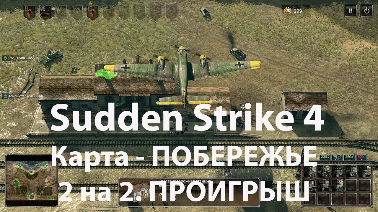 Игра по сети 2 против 3 (Sudden Strike 4 multiplayer 2 vs 2). Sudden Strike 4 стратегия про Вторую Мировую войну вышедшая в 2017 году. Играем карту "Побережье" мы проиграли, но мы сражались как бесстрашные львы. ---------------------------------------------------------------- Для желающих помочь каналу: Яндекс-кошелек – 41001754431094. WebMoney - R216331832030 Карта-Сбербанк - 4276 8060 4272 1521 ---------------------------------------------------------------- Кампания за Германию: Миссия № 1. Битва при Седане - https://youtu.be/a2Ur2JfBOG8 Миссия №2. Французская кампания. 1-я попытка - https://youtu.be/t7Xx6etDYKM. Миссия №2. Французская кампания. 2-я попытка - https://youtu.be/8YfeZ0x7NNA Миссия №3. Операция "Барбаросса" - https://youtu.be/FMDyuvZ18Oc Миссия №4. Сталинградская битва. Часть 1 - https://youtu.be/OKYWIYigZ8o Кампания за Союзников: Миссия №1. Нормандия - https://youtu.be/H22GNHG79PI Миссия №2. Вийе-Бокаж- https://youtu.be/6nTwupu_NFY Миссия №3. Фалезская операция - https://youtu.be/PPzFNxJ4O-k Миссия №4. Голландская операция - https://youtu.be/t7JKA_YicS4 Миссия №5. Арденнская операция - https://youtu.be/hFcrq7VeLqY Кампания за СССР: Миссия №1. Блокада Ленинграда - https://youtu.be/5Dg3ya2Houk Миссия №2. Битва за Москву - https://youtu.be/T6uDkV4icIo Миссия №3. Сталинградская битва ч.1 - https://youtu.be/rUVXREjuYDk Миссия №3. Сталинградская битва ч.2 - https://youtu.be/gLjeIHOKXaw ---------------------------------------------------------------- Наша группа ВК https://vk.com/realwargame Наш Фейсбук https://www.facebook.com/groups/199097870197889/ Наш Твиттер https://twitter.com/TeamRWG Наш форум http://www.realwargame.ru/forum/