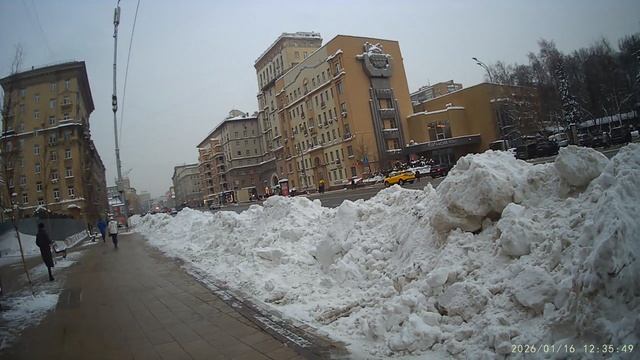 Снега много на Проспекте Мира нагребли.