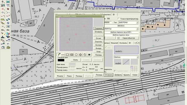 Выполняется редактирование классификатора на примере создания нового шаблона для подписи объекта. "Шаблон подписи леса" состоит из нескольких графических и текстовых элементов