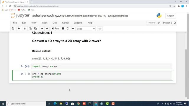 Convert a 1D array to a 2D array with 2 rows | Python Tutorial For Beginners | #Shaheencodingzone