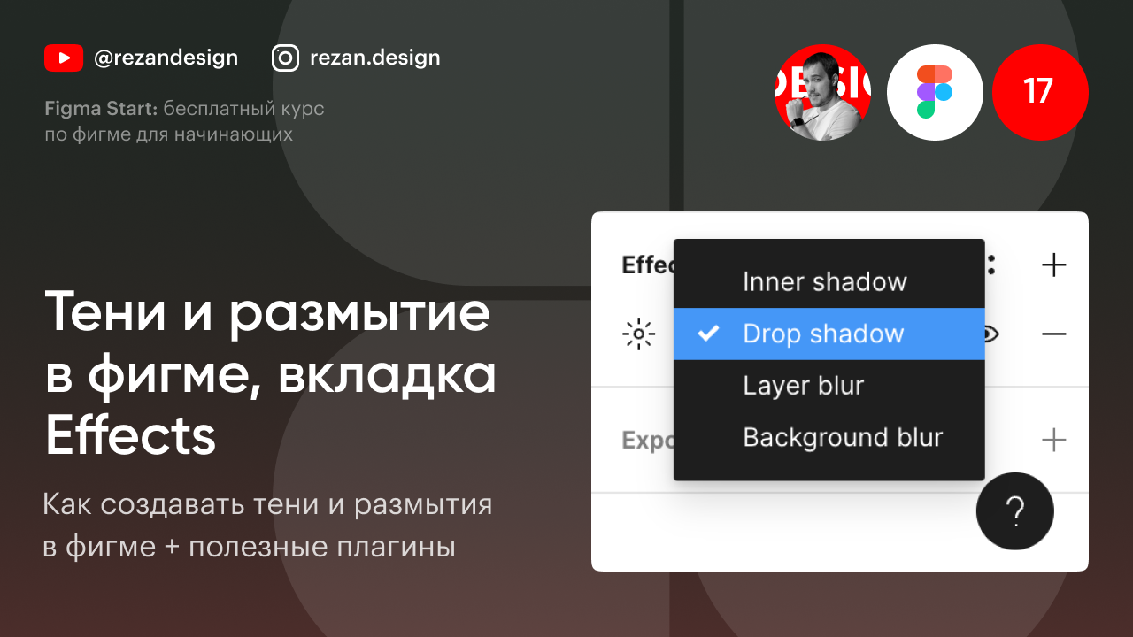 Подписывайся на канал в телеграм: https://t.me/rezandesign Регистрируйся и проходи обучение на сайте: https://rezandesign.ru/figmastart 17 урок бесплатного курса по figma без воды, в котором я рассказал про тени и размытие в фигме. Полезные плагины из видео: Filter / effects Shadow maker Beautiful Shadows Таймлайны урока: 0:00 — Информация о курсе 0:47 — Вкладка Effects в Figma 1:07 — Inner Shadow 2:12 — Drop Shadow 3:52 — Плагин Beautiful Shadows 5:12 — Плагин Shadow maker 11:04 — Layer blur 11:34 — Background blur 13:10 — Плагин Filter / effects ---------------------------------------------------------------------- Подписывайся на Instagram: https://instagram.com/rezan.design Канал в телеграм: https://t.me/rezandesign Не забудь поставить лайк 👍 и подписаться на канал, здесь много полезного про веб-дизайн! #figma #фигма #figmaуроки