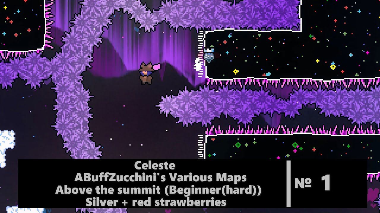 Celeste: ABuffZucchini's Various Maps: Above the Summit (Beginner: hard) Silver + red strawberries