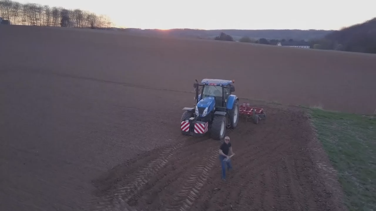 Дрон снимал фермера, который вспахивал поле. Когда фермер заметил его, то не очень обрадовался и решил кинуть в дрон лопатой.