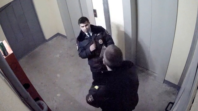 Полицейские развлекаются в подъезде, ожидая лифта. #ниндзя #полицейские #приколы