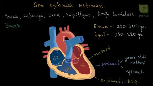 Inson yuragining tuzilishi va qanday qismlardan tashkil topganini ushbu videodarsdan lavha orqali o'rganib olishingiz mumkin. To'liq kurs Prep.uz saytida - https://bit.ly/2U8ee35 https://prep.uz/