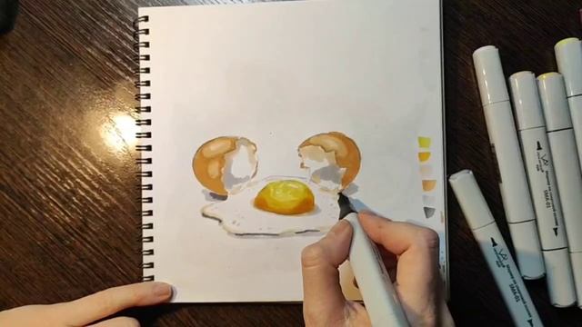 как нарисовать разбитое яйцо маркерами урок №3
