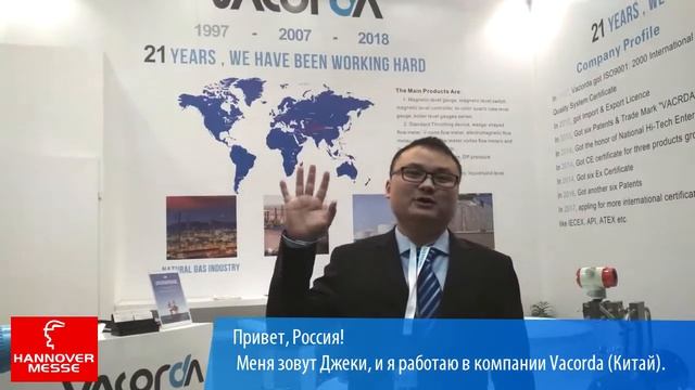 Крупнейшая международная выставка по автоматизации Hannover Messe - 2018: на этот раз видеопривет нам посылает представитель компании Vacorda (Китай). #русавтоматизация #hannovermesse2018