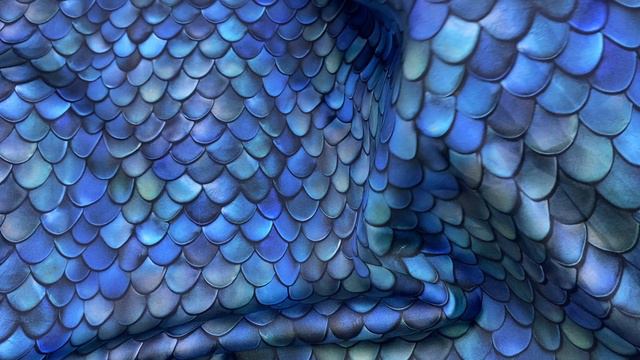 Вискоза голубо-синего цвета с принтом чешуя 17455