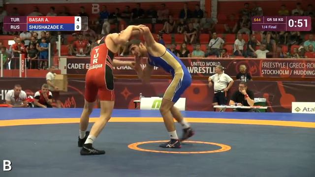1/4 GR - 58 kg: A. BASAR (TUR) df. F. SHUSHAZADE (RUS) by TF, 8-0