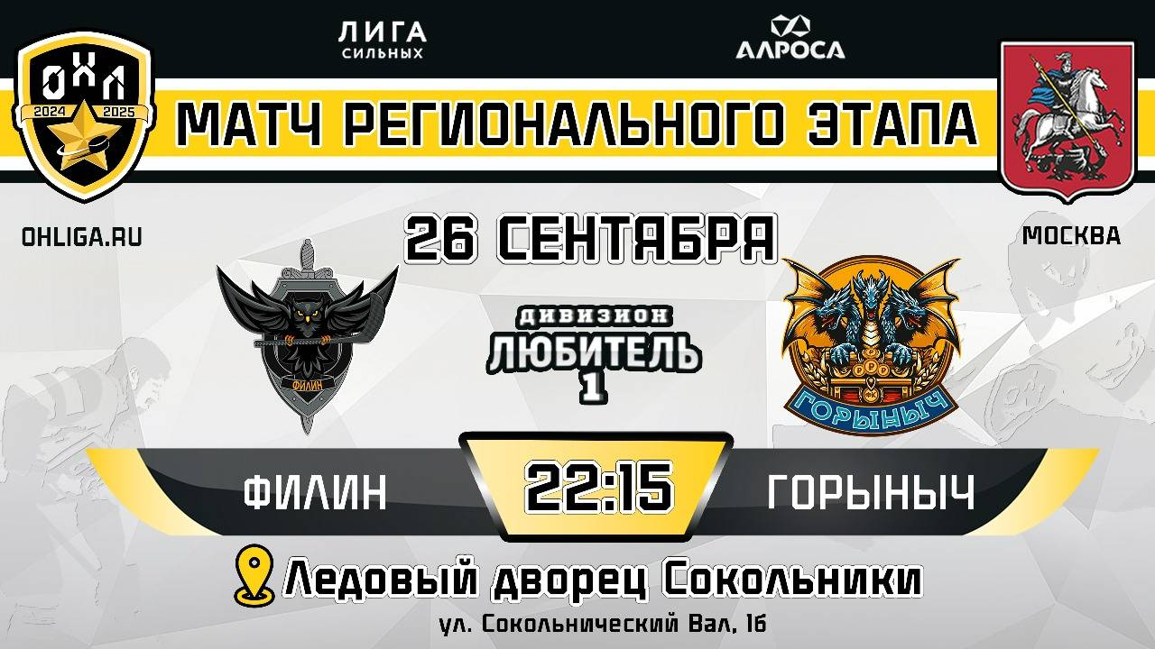 ФИЛИН - ГОРЫНЫЧ / 26.09.24 / ОХЛ МОСКВА / ДИВИЗИОН ЛЮБИТЕЛЬ 1