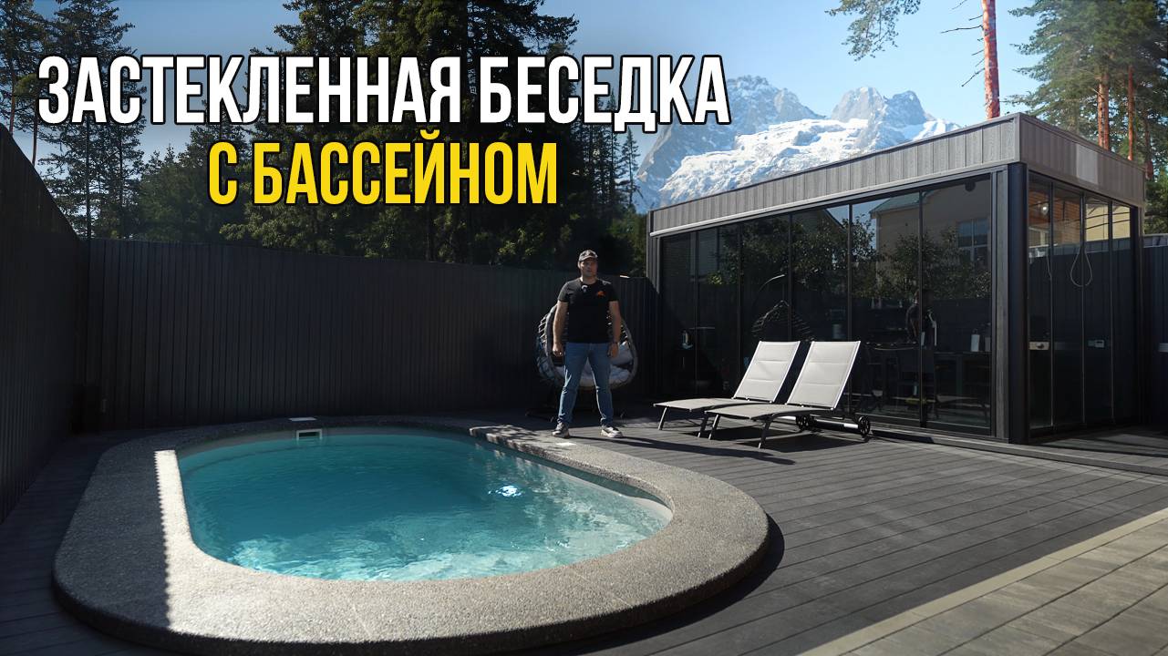 Застекленная БЕСЕДКА с БАСЕЙНОМ и зоной БАРБЕКЮ