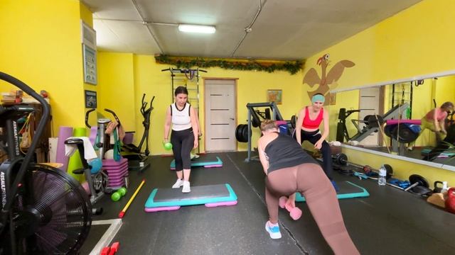 Степ-интервал с гантелями и бодибаром