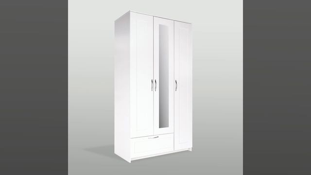 СИРИУС шкаф 3 двери и 1 ящик 117х59х220 (с 1 зеркалом) белый