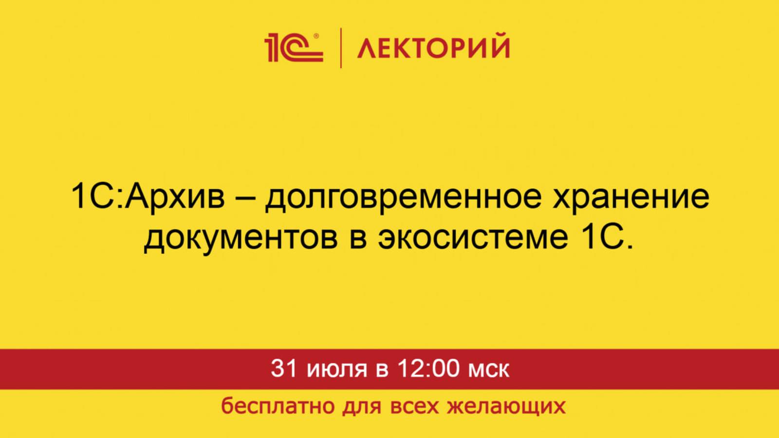 1С:Лекторий. 31.07.2025. 1С:Архив – долговременное хранение документов в экосистеме 1С