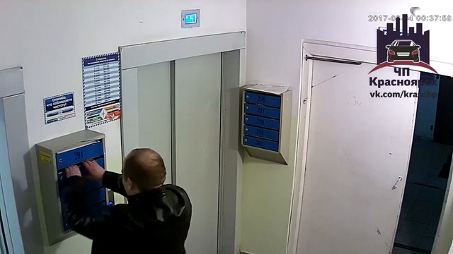 Красноярск. ул. Вильского, 28, второй подъезд. Мужчина сорвал почтовый ящик в подъезде.