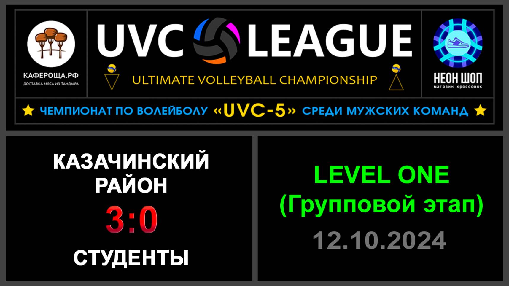 UVC-4 (Мужчины): Чемпионат UVC Лиги по волейболу среди мужских команд, 2024-2025 гг. Результаты игры: LEVEL ONE (Групповой этап) 12.10.2024 Казачинский район - Студенты 3:0 (25:21, 25:21, 25:22) Казачинский район одержал сухую победу, команда отыграла стабильнее своих соперников! Сегодня Студенты проиграли, но показали что у них есть хороший потенциал, эти парни ещё у нас пошумят! Василий Бочаров решил пойти по стопам своего сына - Максима Бочарова , сыграть одну игу в UVC Лиге и попасть в Суперлигу! Удачи Василию, кстати, отыграл отлично!✊ ✅Обе команды прошли в следующий этап конкурса «РЕШАЛА»! ⛔В конкурсе «Робин Гуд» точных попаданий не было! #UVC_ЛИГА_ЧЕМПИОНАТ_UVC_5_Мужчины