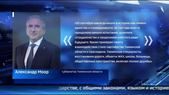 Александр Моор поздравил тюменцев с Днем воссоединения с новыми регионами