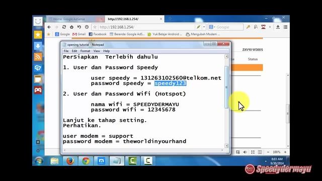 Video ini berisi tentang bagaimana cara mensetting internet Speedy dengan PPOE dan Setting Wifi pada modem Speedy Type ZTE ZXV10 W300S.