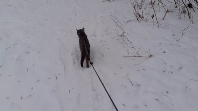 Кот Тишка гуляет на улице, зима.