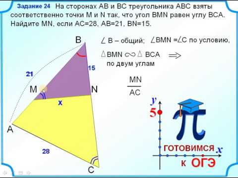 На сторонах АВ и ВС треугольника АВС взяты соответственно точки М и N так, что угол ВМN равен углу ВСА. Найдите MN, если АС=28, АВ=21, BN=15.