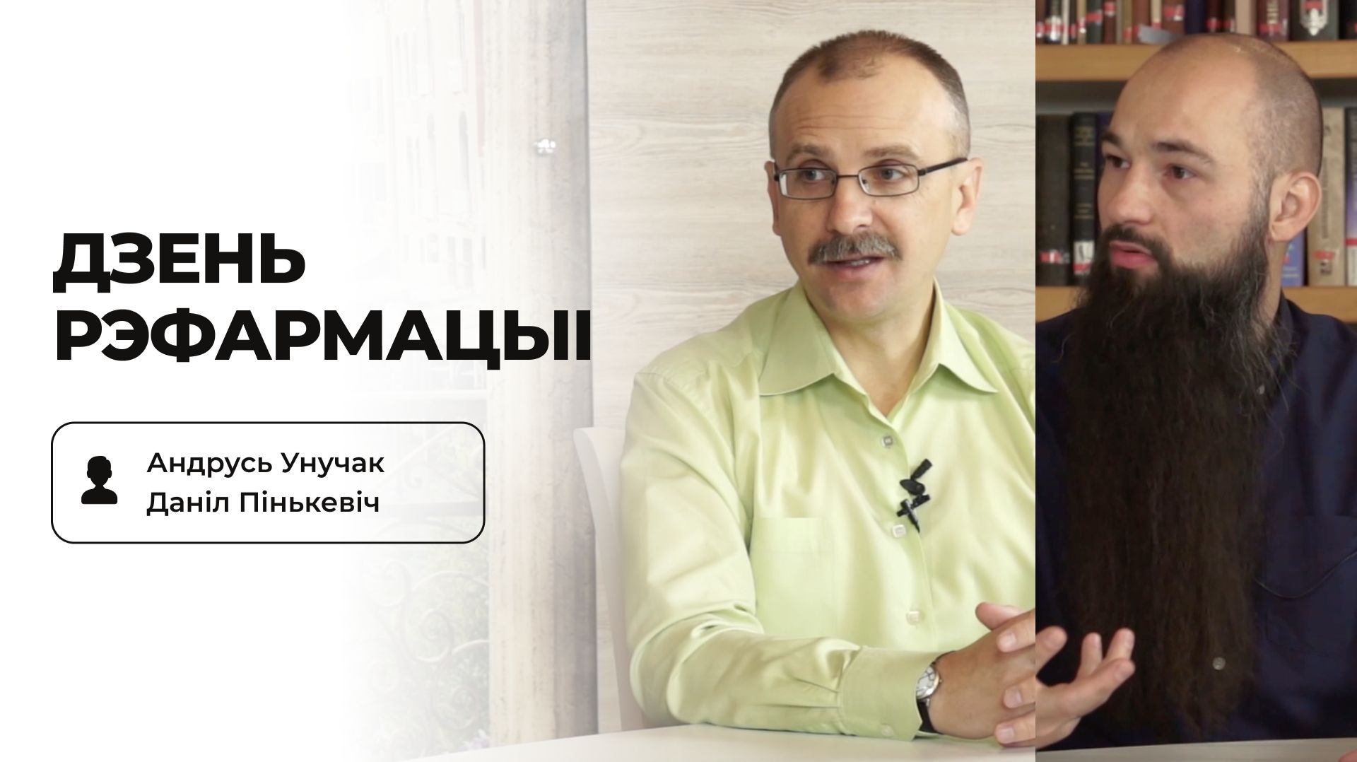 ・Андрусь Унучак – служыцель царквы «Ян Прадвесьнік», кандыдат гістарычных навук, даследчык гісторыі евангельскага руху ў Беларусі. 00:00 Пачатак 0:45 Што такое Рэфармацыя? 2:32 Ці была Рэфармація ўнікальнай падзеяй ў гісторіі хрісціянскай царквы? 5:40 У чым была сутнасць 95-ці тэзісаў Марціна Лютара? 10:17 Як пачаласа Рэфармацыя ў Беларусі? 13:55 Якім чынам Рэфармація паўплывала на ўзнікненне нацыянальных дзяржаў? 22:54 Пра галоўныя пропаведзі Рэфармацыі 28:18 Ключавыя асобы заходнееўрапейскай і беларускай Рэфармацыі 32:00 Асноўныя актыўнасці Рэфармацыі 41:31 Пра плады Рэфармацы 46:55 Ці могуць сучасныя беларускія евангельскія цэрквы назваць сябе пераемнікамі Рэфармацыі? 51:00 Парады як адсвяткаваць Дзень Рэфармацыі — Над выпускам працавалі: Здымка, мантаж: Павел Сітнік Вядучы, рэдактар: Даніл Пінькевіч Вокладка: Кацярына Шайтар