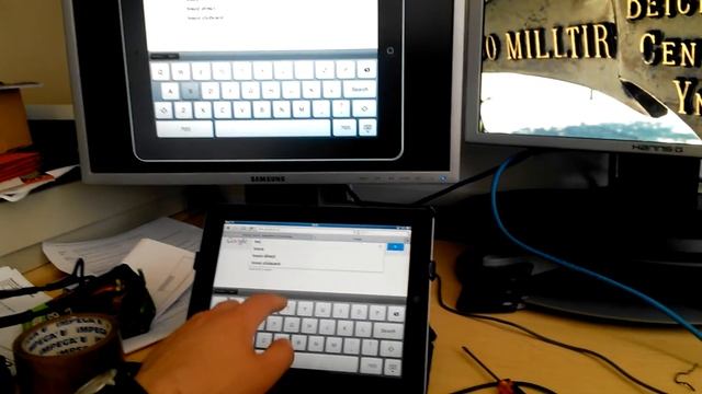 Testing out "reflector" for streaming an iPad 2 straight to a PC screen whilst keeping internet connection active in a corporate environment. Can also be done easily at home too... This is going to be really good for our lecture theatre.