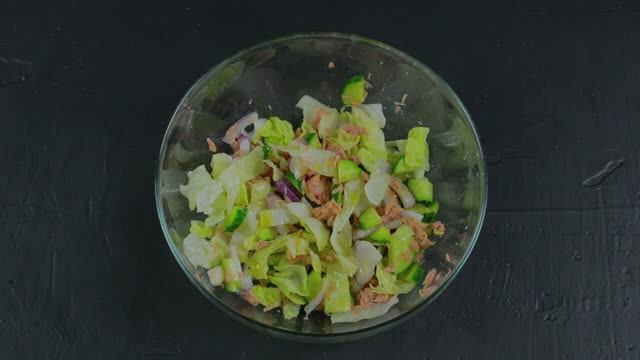 Салат из тунца готовится просто и из доступных продуктов: ✔ тунец консервированный кусочками; ✔ огурец; ✔ салат айсберг; ✔ лук крымский; ✔ масло оливковое. Этот полезный салат с Тунцом порадует вас своей легкостью и в то же время он сытный.