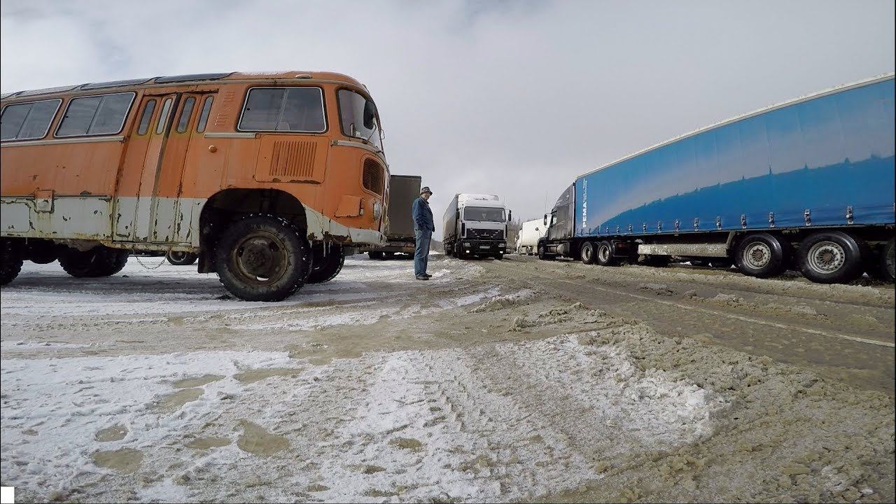 Перегон автобуса ПАЗ 3201 из Соликамска в Псков. Начало пути, стеклоочистители работают плохо, спидометр не работает, меняю трос спидометра, за мной гонятся ГАИшники, пробки на дорогах из за обильных снегопадов, потекла помпа и её ремонт.